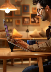 This ultra-slim foldable laptop stand attaches discreetly to the base of your laptop, giving you instant elevation whenever you need it. Lightweight and barely noticeable when closed, it becomes part of your device — ready to support better posture wherever you work.